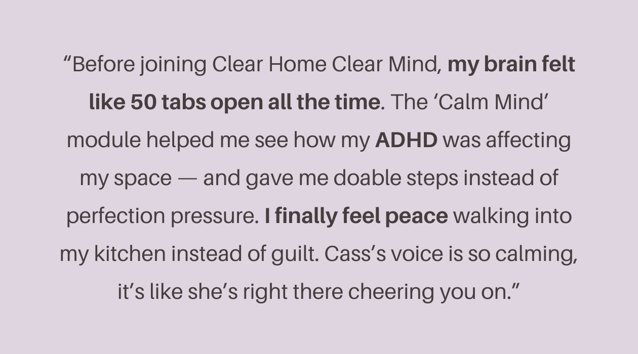Clear Home, Clear Mind helps you release what’s really keeping you stuck — emotionally, mentally, and energetically — so you can finally create a calm, peaceful home (and life) that feels good to live in.
